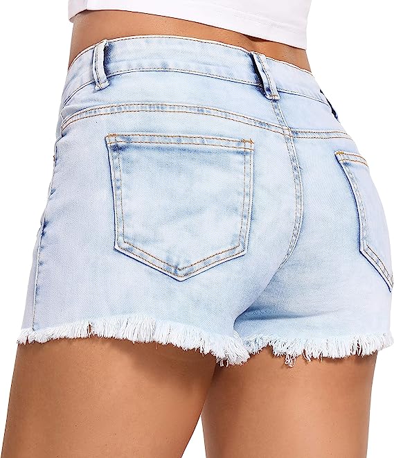4. STYLISH DESIGN - Low waistband with belt loops, Zip fly with button closure, Ripped holes, Classic five-pockets, Super stretchy, Flattering slim fit. These stylish summer ripped denim shorts feature stylish fringe cuffs for a trendy and stylish look that will never go out of style.